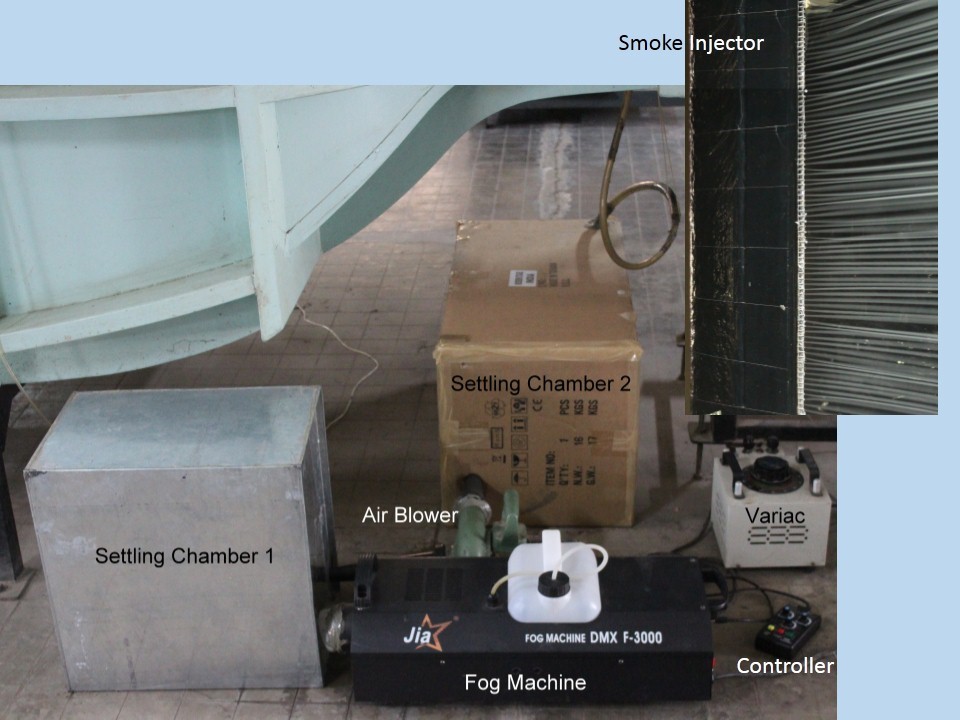 Smoke flow visualization is a qualitative technique used to analyze the flow behavior. The smoke follows the air currents, allowing the observer to visualize the flow. A smoke generator is coupled with an air blower and a settling chamber. From this chamber, smoke is fed to smoke injector, which has a shape of an airfoil with a number of small diameter tubes placed at trailing edge. The smoke exit the injector as a sheet. The smoke sheet moves with the air and deforms, describing the flow pattern. The ability to see flow pattern on a model often gives insight into aerodynamic behavior.